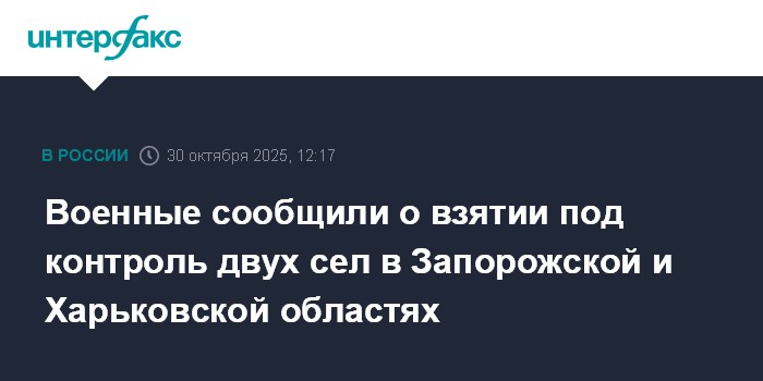 Москва. 30 октября. INTERFAX.RU - Российские военные установили контроль над селами Красногорское в Запорожской области и Садовое в Харьковской области, сообщили в Минобороны РФ в четверг.
