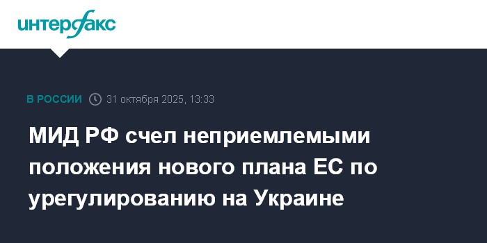 Москва. 31 октября. INTERFAX.RU - В Москве считают неприемлемыми и ультимативными для России положения нового плана Евросоюза по урегулированию украинского конфликта, заявила официальный представитель МИД РФ Мария Захарова.
