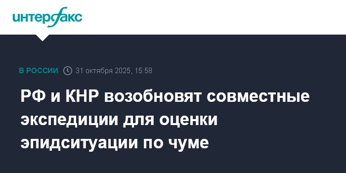 Москва. 31 октября. INTERFAX.RU - Россия и Китай возобновят совместные экспедиции для оценки и прогнозирования эпидемиологической ситуации по чуме и другим инфекциям, сообщили в Роспотребнадзоре.