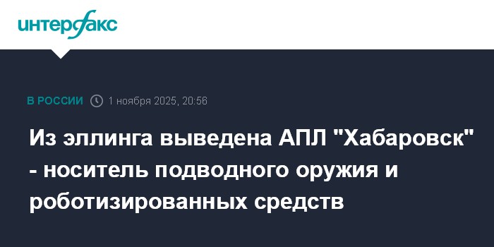 Москва. 1 ноября. INTERFAX.RU - Церемония вывода из эллинга атомной подводной лодки "Хабаровск" состоялась на предприятии "Севмаш" в Северодвинске под руководством министра обороны РФ Андрея Белоусова, сообщило Минобороны РФ в субботу.
