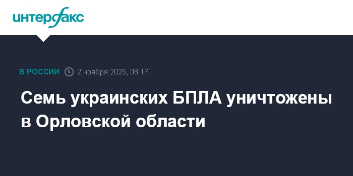 Москва. 2 ноября. INTERFAX.RU - Губернатор Орловской области Андрей Клычков сообщил о нейтрализации семи беспилотников ВСУ над территорией региона.