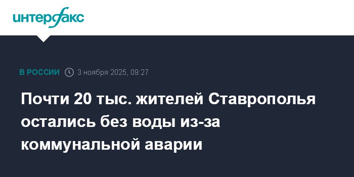 Почти 20 тыс. жителей Ставрополья остались без воды из-за коммунальной аварии
