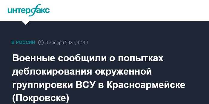 Военные сообщили о попытках деблокирования окруженной группировки ВСУ в Красноармейске (Покровске)