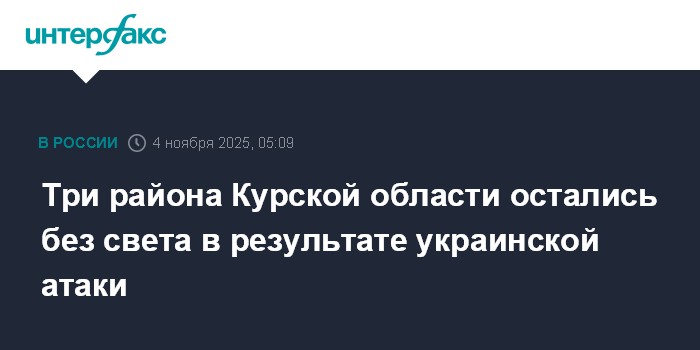 Москва. 4 ноября. INTERFAX.RU - Губернатор Курской области Александр Хинштейн сообщил, что в результате удара ВСУ по подстанции без света остались более 16 тыс. потребителей.