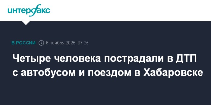 Москва. 6 ноября. INTERFAX.RU - Поезд столкнулся с пассажирским автобусом в четверг в Хабаровске, пострадали четыре человека, сообщает пресс-служба Госавтоинспекции УМВД России по Хабаровскому краю.
