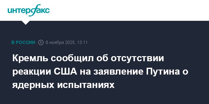 Кремль сообщил об отсутствии реакции США на заявление Путина о ядерных испытаниях