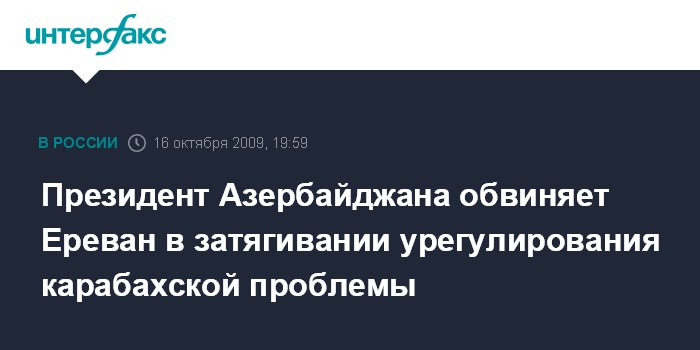 Баку. 16 октября. INTERFAX.RU - Армения затягивает карабахское урегулирование, поднимая на переговорах уже согласованные прежде вопросы, заявляет президент Азербайджана Ильхам Алиев.