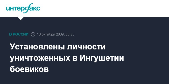 Назрань. 16 октября. INTERFAX.RU - Следствие установило личности четырех боевиков, ликвидированных в Ингушетии в ходе боестолкновения в станице Орджоникидзевской.