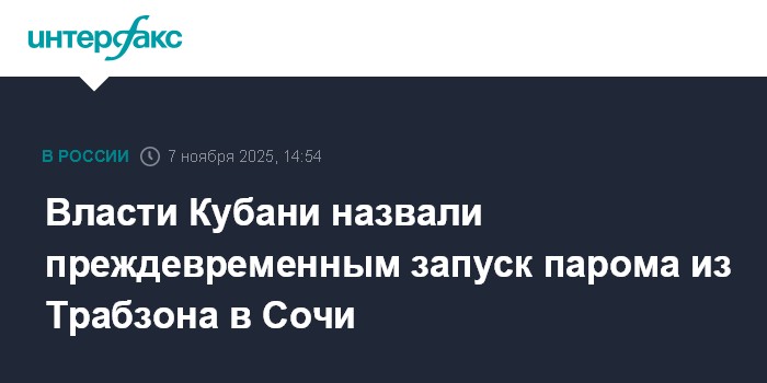 Москва. 7 ноября. INTERFAX.RU - В администрации Краснодарского края назвали преждевременным запуск парома между Трабзоном и Сочи в связи с нерешенными вопросами безопасности, сообщил "Интерфаксу" представитель администрации.