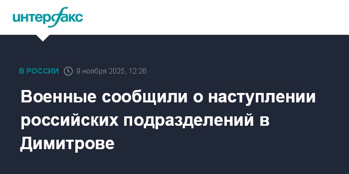 Москва. 9 ноября. INTERFAX.RU - Российская армия ведет наступательные действия в Димитрове (Мирнограде), заявило Минобороны РФ в воскресенье.