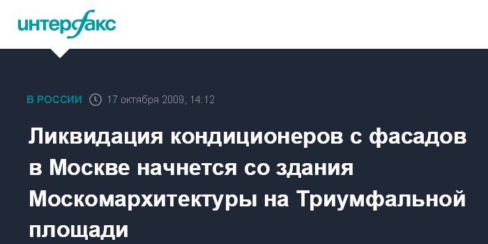 Москва. 17 октября. INTERFAX.RU - Главный архитектор Москвы пообещал начать массовое снятие кондиционеров с фасадов зданий в городе с собственного здания Москомархитектуры на Триумфальной площади.