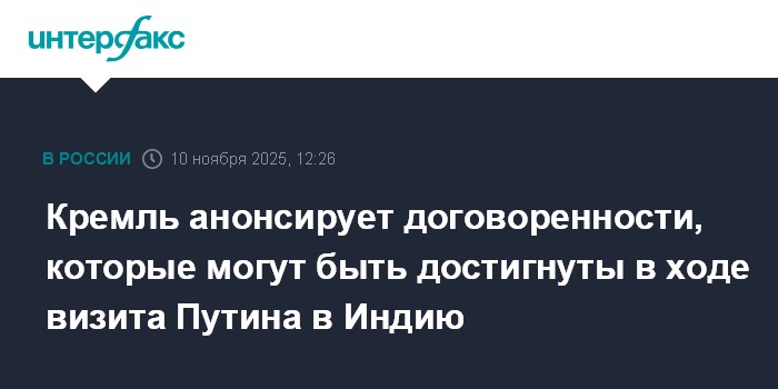 Кремль анонсирует договоренности, которые могут быть достигнуты в ходе визита Путина в Индию