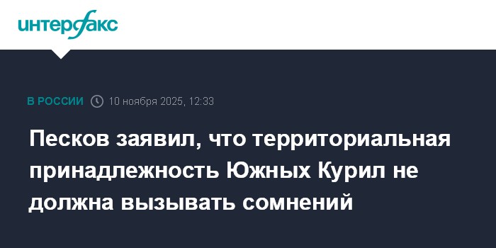 Песков заявил, что территориальная принадлежность Южных Курил не должна вызывать сомнений