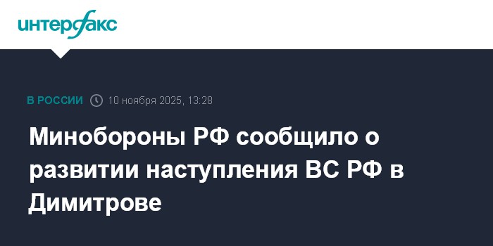Минобороны РФ сообщило о развитии наступления ВС РФ в Димитрове