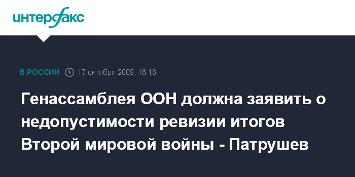 Генассамблея ООН должна заявить о недопустимости ревизии итогов Второй мировой войны - Патрушев