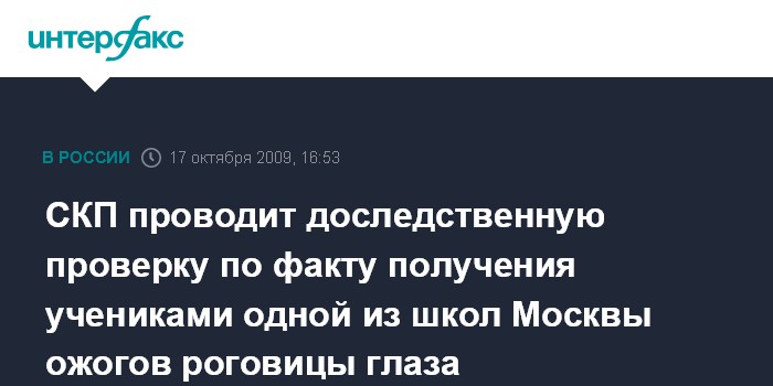 СКП проводит доследственную проверку по факту получения учениками одной из школ Москвы ожогов роговицы глаза