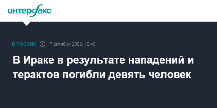 Москва. 17 октября. INTERFAX.RU - Серия терактов совершена в различных районах Ирака. Погибли девять человек, передает корреспондент ВВС.