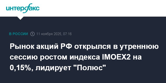 Рынок акций РФ открылся в утреннюю сессию ростом индекса IMOEX2 на 0,15%, лидирует "Полюс"