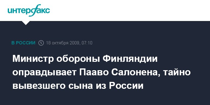 Министр обороны Финляндии оправдывает Пааво Салонена, тайно вывезшего сына из России