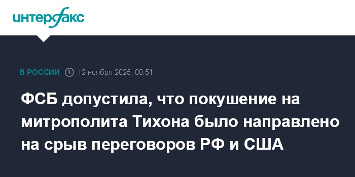 ФСБ допустила, что покушение на митрополита Тихона было направлено на срыв переговоров РФ и США