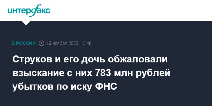 Струков и его дочь обжаловали взыскание с них 783 млн рублей убытков по иску ФНС
