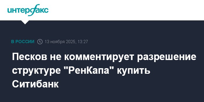 Песков не комментирует разрешение структуре "РенКапа" купить Ситибанк