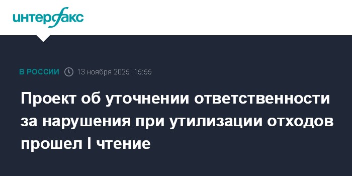 Проект об уточнении ответственности за нарушения при утилизации отходов прошел I чтение