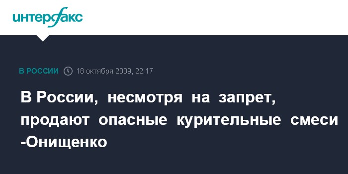 Москва. 18 октября. ИНТЕРФАКС - Руководитель Роспотребнадзора, главный государственный санитарный врач РФ Геннадий Онищенко предлагает приравнять опасные курительные смеси к сильнодействующим психотропным веществам.