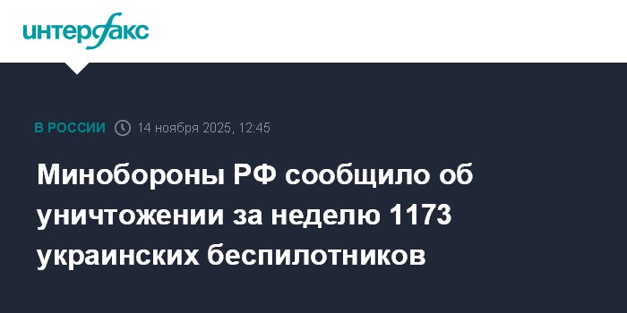 Минобороны РФ сообщило об уничтожении за неделю 1173 украинских беспилотников