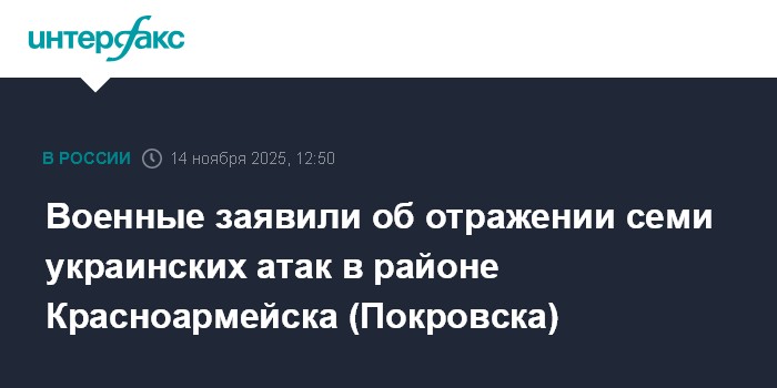 Москва. 14 ноября. INTERFAX.RU - Российские военные отразили семь украинских атак с целью деблокирования окруженной группировки ВСУ в Красноармейске (Покровске), сообщили в Минобороны РФ в пятницу.