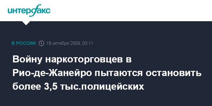 Лондон. 19 октября. ИНТЕРФАКС - Бразильские власти направили дополнительно 3500 полицейских в район на северной окраине Рио-де-Жанейро, где в субботу произошли столкновения конкурирующих группировок наркоторговцев, сообщает Би-би-си.