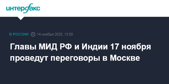 Главы МИД РФ и Индии 17 ноября проведут переговоры в Москве