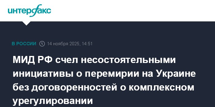 МИД РФ счел несостоятельными инициативы о перемирии на Украине без договоренностей о комплексном урегулировании