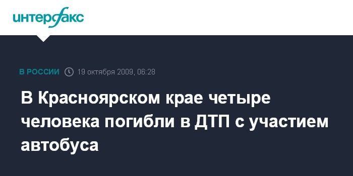 "В 1:00 мск у населенного пункта Бобровка Казачинского района (160 км юго-восточнее Красноярска) в результате опрокидывания рейсового автобуса "Хендай" пострадали 10 человек - четверо погибли, шестеро госпитализированы", - сказал собеседник агентства.