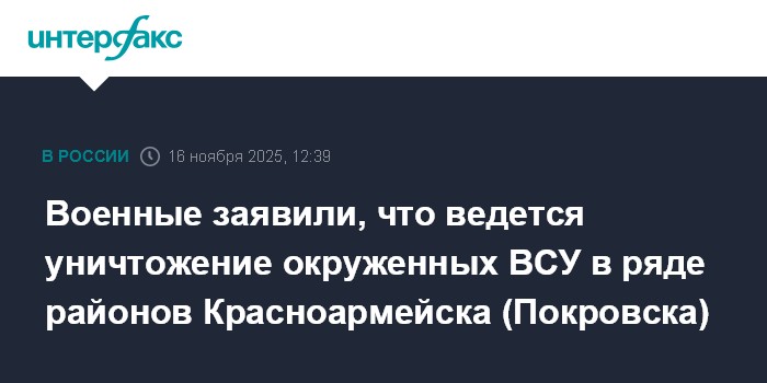 Военные заявили, что ведется уничтожение окруженных ВСУ в ряде районов Красноармейска (Покровска)