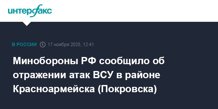 Минобороны РФ сообщило об отражении атак ВСУ в районе Красноармейска (Покровска)