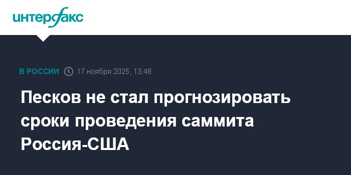 Москва. 17 ноября. INTERFAX.RU - Прогнозировать, когда могут возникнуть условия для российско-американского саммита, в данный момент сложно, заявил на брифинге пресс-секретарь президента Дмитрий Песков.