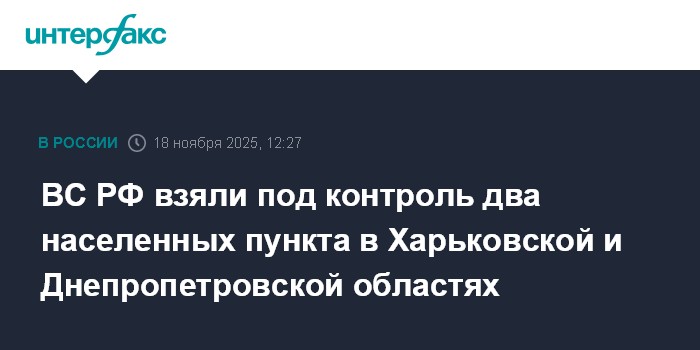ВС РФ взяли под контроль два населенных пункта в Харьковской и Днепропетровской областях