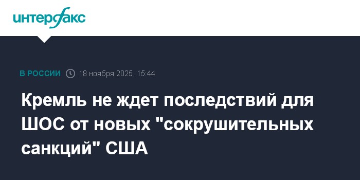Кремль не ждет последствий для ШОС от новых "сокрушительных санкций" США