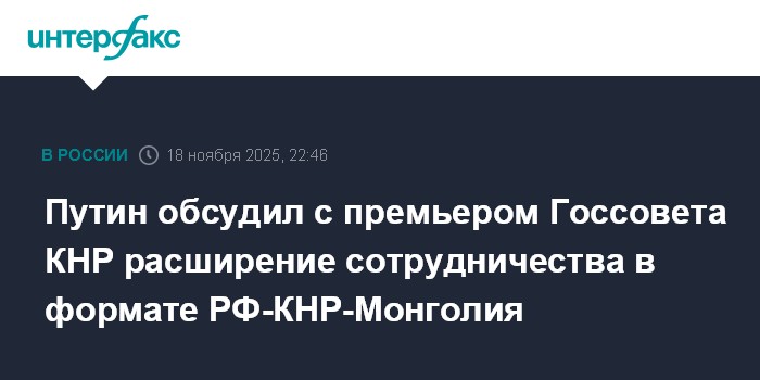 Москва. 18 ноября. INTERFAX.RU - Россия уделяет особое внимание взаимодействию в формате РФ-Китай-Монголия, заявил президент Россия Владимир Путин.