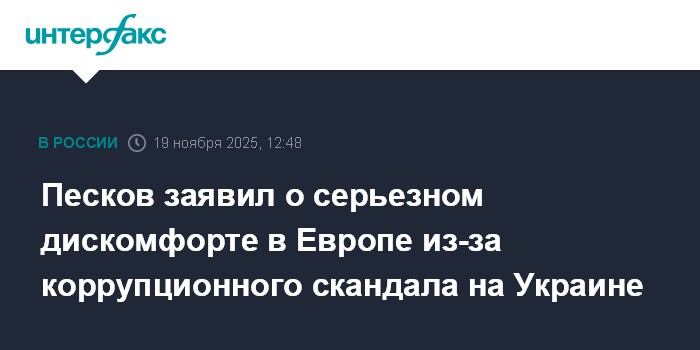 Песков заявил о серьезном дискомфорте в Европе из-за коррупционного скандала на Украине