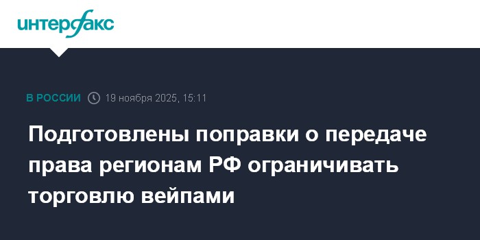 В аппарате вице-премьера Дмитрия Григоренко подтвердили журналистам, что "прорабатывается возможность внесения ко второму чтению поправки, которая даст регионам возможность вводить запрет на розничную продажу электронных систем доставки никотина и жидкостей".