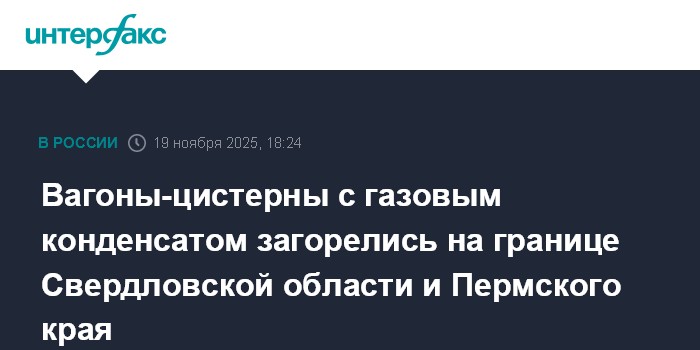 Уральская транспортная прокуратура в свою очередь в своем телеграм-канале сообщает, что вечером 19 ноября на перегоне Шамары-Кордон Свердловской железной дороги произошло возгорание цистерн с грузом (конденсат газовый), находящихся в составе грузового поезда, следующего сообщением Лембей-Лужская.