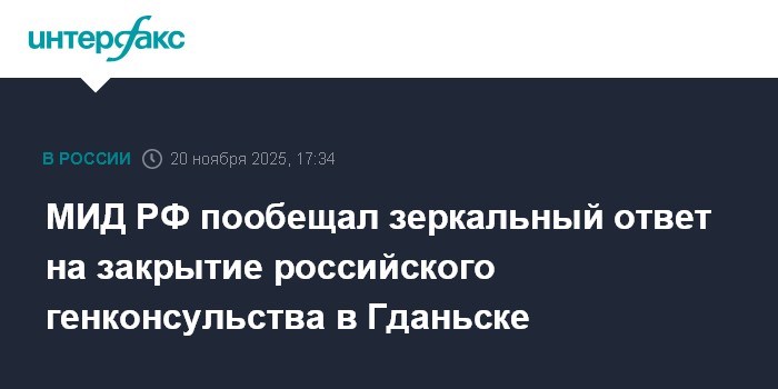 МИД РФ пообещал зеркальный ответ на закрытие российского генконсульства в Гданьске