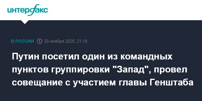 Москва. 20 ноября. INTERFAX.RU - Президент РФ Владимир Путин при посещении одного из командных пунктов группировки "Запад" высоко оценил работу командного и личного состава и выразил признательность, заявил пресс-секретарь главы российского государства Дмитрий Песков.