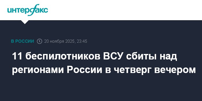 11 беспилотников ВСУ сбиты над регионами России в четверг вечером
