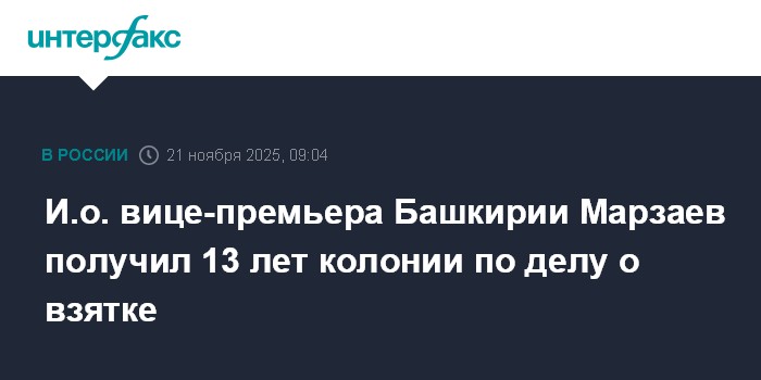 И.о. вице-премьера Башкирии Марзаев получил 13 лет колонии по делу о взятке