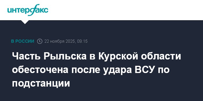 Москва. 22 ноября. INTERFAX.RU - Губернатор Курской области Александр Хинштейн сообщил об украинском ударе по подстанции в городе Рыльске.