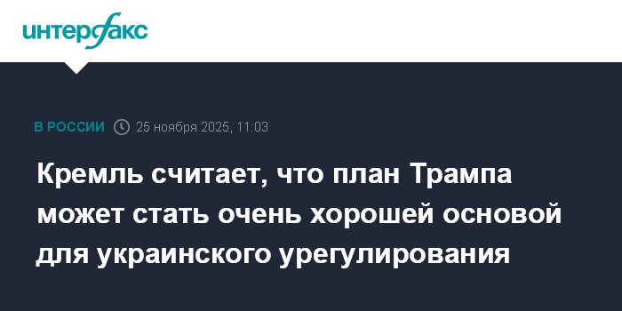 Кремль считает, что план Трампа может стать очень хорошей основой для украинского урегулирования