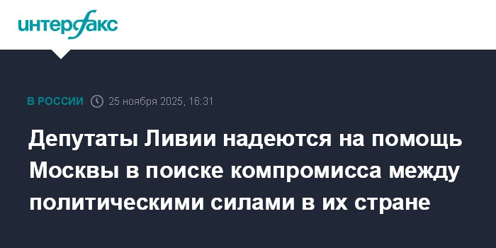 Москва. 25 ноября. INTERFAX.RU - В парламенте Ливии рассчитывают на помощь и более активную роль Москвы в поиске компромисса между двумя центрами власти в этой стране, заявил глава делегации ливийских депутатов Заид Хадия.